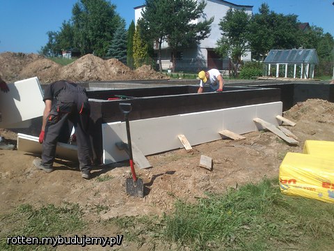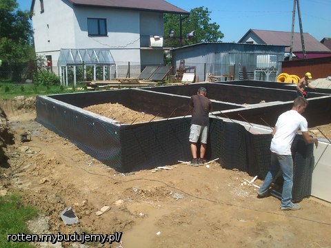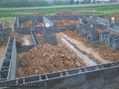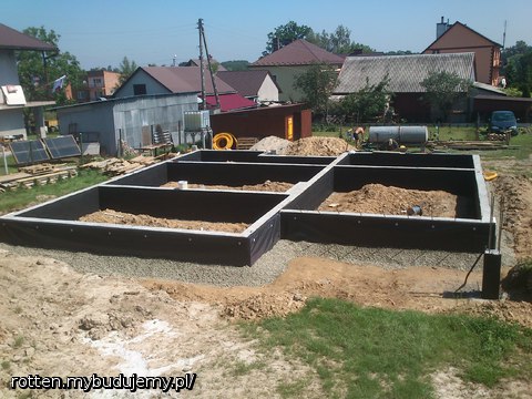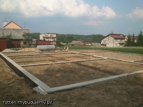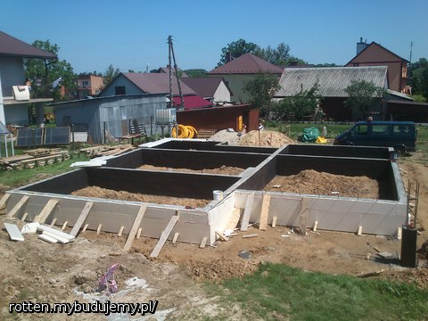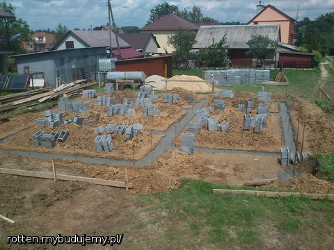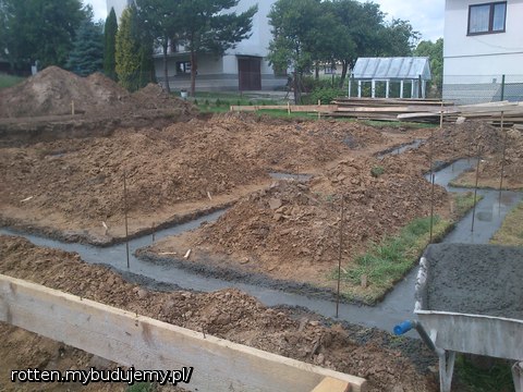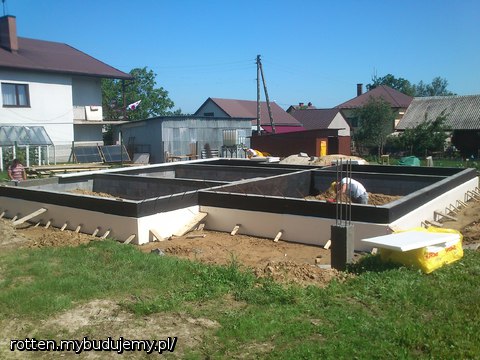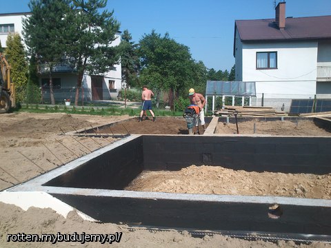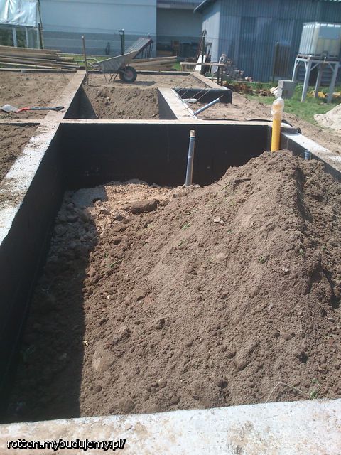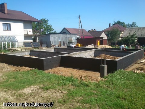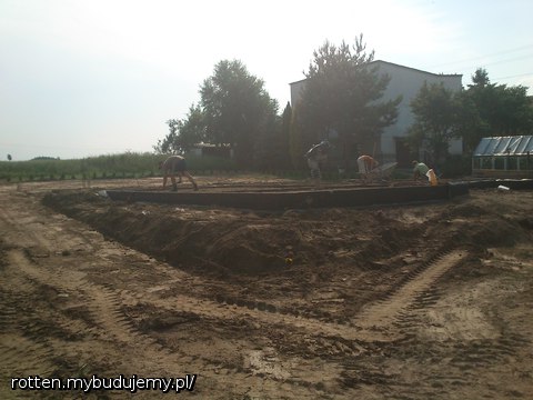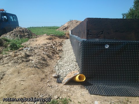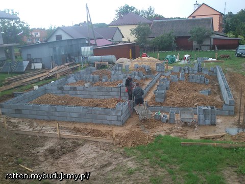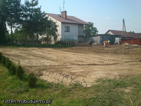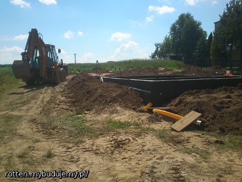 W poniedziałek kończymy układać folię kubełkową, kopiemy drenaż i koparką otulamy budynek ziemią. Wtorek zamówiona ziemia do środka budynku + położenie kanalizacji, środa wylewanie ślepej wylewki, czwartek hmmm tak daleko nie wybiegam :D