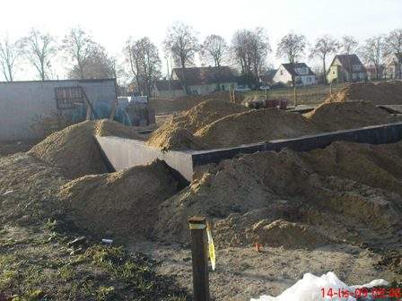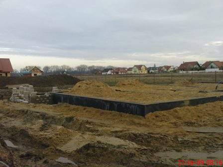 Ekipa budowlana zakończyła stawianie fundamentów. Jeszcze zasypać piaskiem i koniec robót przed zimą.