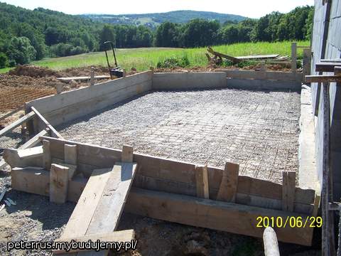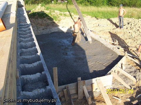 A koło godziny 18 zalana 7 kubikami betonu B20, co w konsekwencji dało płytę grubości około 25cm