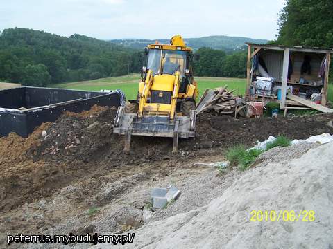 Cztery auta ziemi po 10 kubików już zwiezione. Wieczorem ma być koparka i zasypać do końca pomieszczenie pod garażem. Prawdopodobnie będzie to zbrojone siatkami albo w ogóle więc jutro może by się udało to oszalować i wylać razem z resztą stropu.