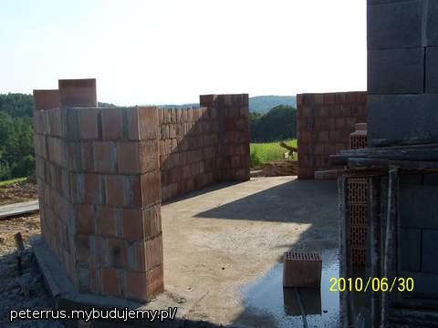 Po wylaniu stropu trzeba było odczekać dwa dni nim ekipa ruszyła z dalszą pracą. W piątek i sobotę 09-10.07.2010 pracowało na budowie około 10 osób więc nim się obejrzeliśmy ściany parteru już prawie stały.