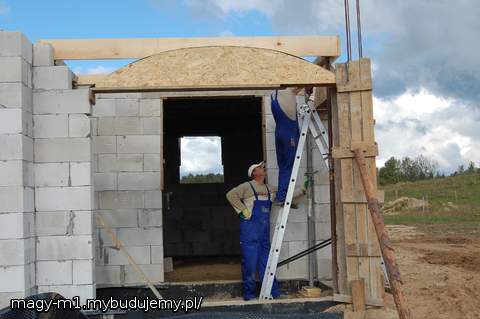 A TU WIDAC JAK CHŁOPAKI UKŁADAJA JUZ PODPORY POD STROP :) TYŁ DOMU