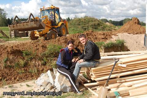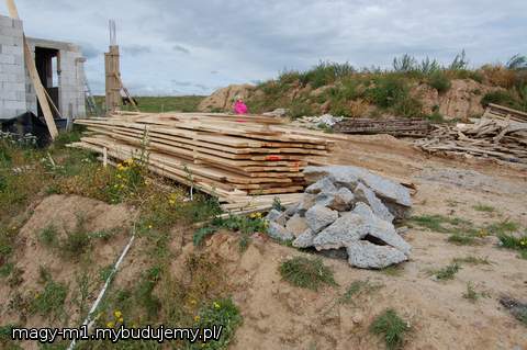 W CZASIE ,GDY KOPARKA I WYWROTKA DZIAŁAŁY Z PIASKIEM ,EKIPA UKŁADAŁA SZALUNKI NA STROP:)I SCHODY NA PARTER;)