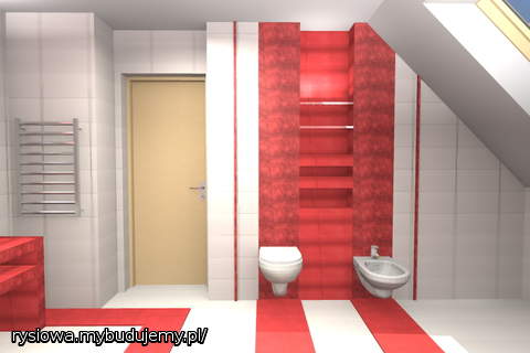 Sama nie wiem... Ja chyba wolałabym lazienkę w bardziej stonowanych kolorach. Czerwień jest dla mnie zbyt agresywna. Poza tym te wszystkie drobiazgi, które nam, kobietom są niezbędne do życia, a których miejsce jest w łazience, mogą wprowadzić chaos w to wystudiowane wnętrze. No, ale oczywiście de gustibus non est disputandum. Ciekawe jak będzie wyglądać w realu.