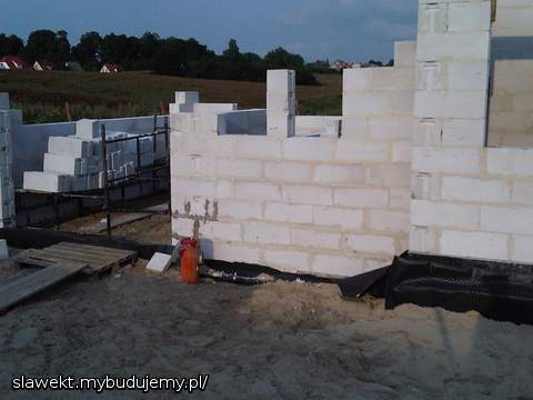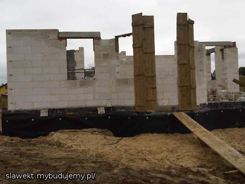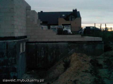 Czekamy na żwir do zasypania drenu, ma być jutro, wtedy będzie można wreszcie zasypać fundamenty i przygotować po zagęszczeniu gruntu fundamenty pod ganek i zrobić schody do piwnicy. Zdjęcia robione pod wieczór, dlatego mało wyraźne ....