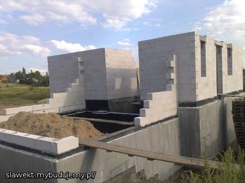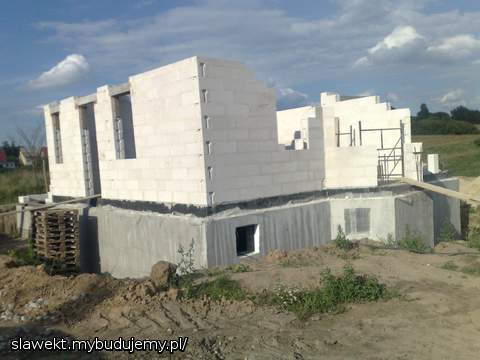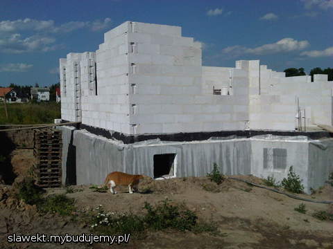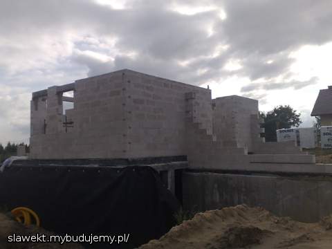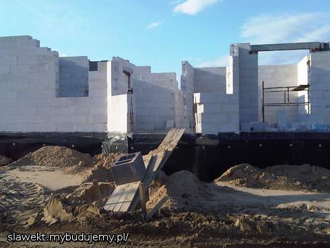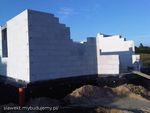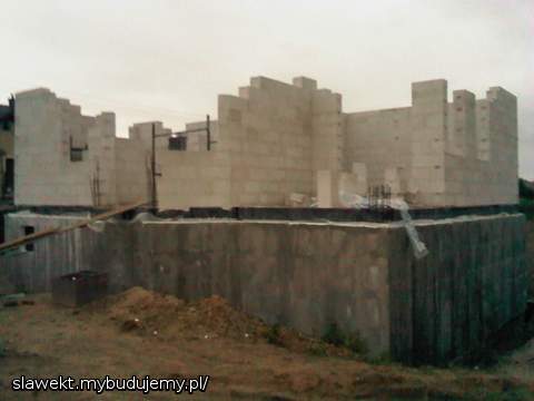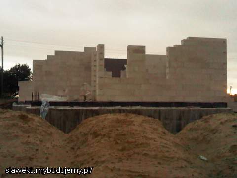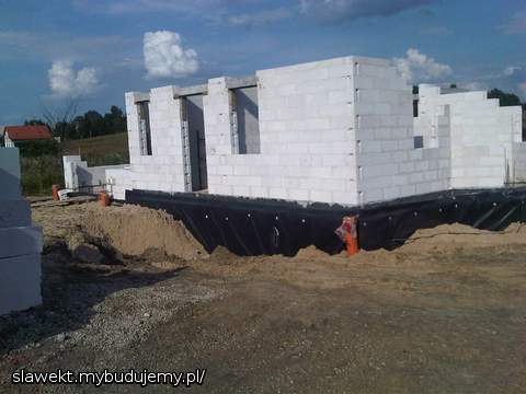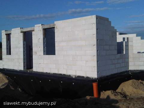 Przejechał żwir, przygotowanie ław pod drenaż, ściany poszły troszkę w górę.