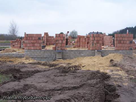 Dziś co prawda 13, ale wczoraj zaczęli fachowcy zwozić swoje sprzęty na budowę i dziś ruszyli z murami.