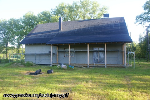 Szczypówka przestała wyglądać jak zadbany pustostan. Powoli przypomina dom - szczególnie z daleka, gdy nie widać, że kolorek na ścianach to tylko grunt. Przy okazji, idąc za ciosem zamontowane zostały parapety zewnętrzne (zwykłe, z blachy w kolorze okien).