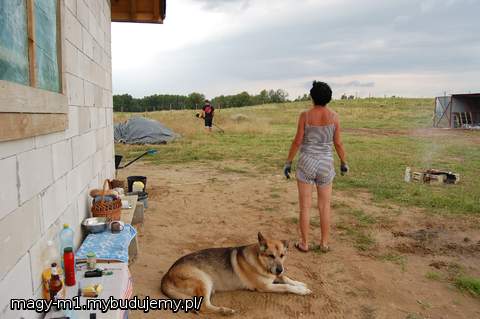 NAWET NASZ PIESEK MIAŁ DOSĆ DZIEŃ W DZIEN OD 7 DO 22 NA BUDOWIE...PADAŁ JAK MY:)A NAJLEPIEJ PILNOWAŁ GRILA ZROBIONEGO PRZEZ MAMĘ GIENIE Z PUSTAKÓW I PRETÓW ZE ZBROJENIA ;)) KAZDY CZEKAŁ NA KIEŁBASKI:))W TRAKCIE PRACY:) MNIAM..