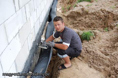 ODWODNIENIA CD ...EKIPA TA SAMA CO ROBIŁA DRENAZ DALEJ MONTUJE STUDNIE STUDZIENKI ETC.. TERAZ WODA Z RYNNIEN BEDZIE SPŁYWAŁA TAM GDZIE POWINNA A NIE DO PIWNICY..;))) PIWNICA POWOLI OBSYCHA A DRENAZ TERAZ DZIAŁA JAK TRZEBA