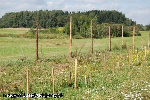 A POTEM ZWYKŁE SŁUPKI DREWNIANE I SIATKA TZW LEŚNA..