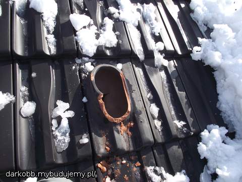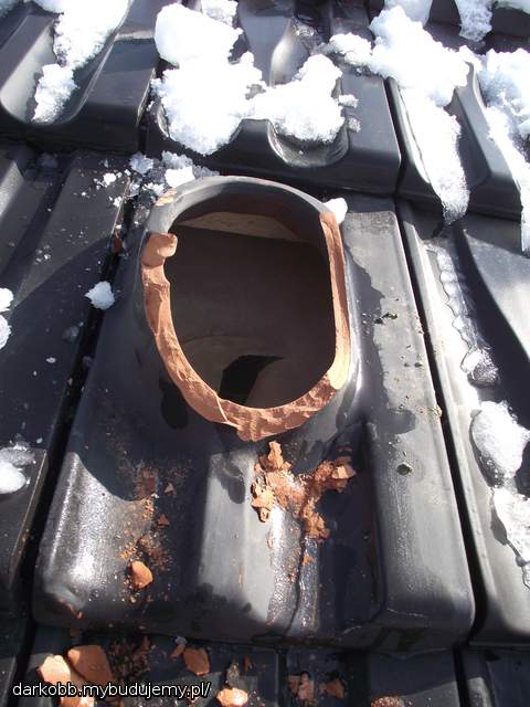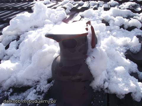 ...odchodząca zima dała znać o sobie....śnieg który zjechał z dachu wyłamał dachówki wentylacyjne z kominkami...śmierdząca sprawa...przy takim małym kącie płaszczyzny dachu, a takie szkody....dachówka poszła na reklamacje...nie popuszcze tego tak