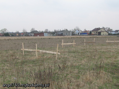 O 9.00 zaczeliśmy wytyczenie, po osiach fundamentów, poziom na zero też załapali.Pogoda jak na zamówienie- super tylko troszeczki wiatr wiał.Trochę to potrwało o 12.30 skończyli .We wtorek kopiemy, jak pogoda dopasuje.Mąz zakupił stal zbrojeniową. Beton B 20 zamówił na wtorek.To do przodu ! Ruszamy.