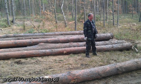 Skonczyliśmy akcję wycinania drzewa na dach , schody, na potrzebny elementy domu.Wycięte narazie leży, od 14 kwietnia pan będzie zgodnie z projektem rozcinać na części potrzebne na dach.To nasz pierszy ruch w budowie.