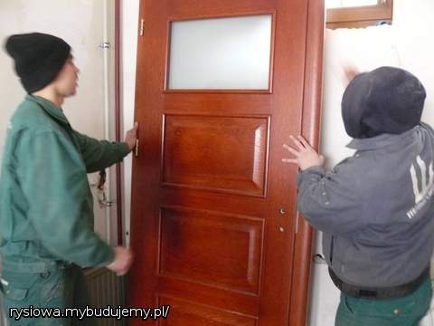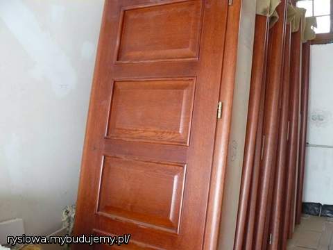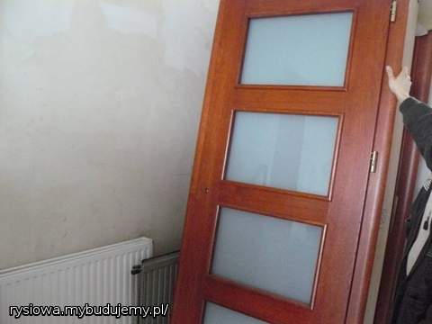 Muszę Wam powiedzieć, że stolarz się spisał. Jesteśmy zadowoleni, drzwi są zrobione bardzo starannie. Pełne są do suszarni, garderoby i pomieszczenia gospodarczego. Z jedną szybką do łazienek, reszta ma po cztery szyby. Jeszcze suszą się moje drzwi przesuwne, więc nie mamy ich jeszcze na budowie. Kolor drzwi jest robiony pod kolor podłóg w pokojach.