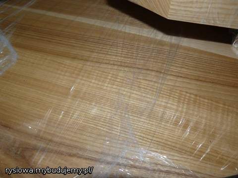 Jeżeli chodzi o schody...niewiele widać. Mają naturalny kolor jesionu, znaczy się, nie są jednorodne kolorystycznie. W dalszym ciągu nie potrafię ich sobie wyobrazić na swoim miejscu. Mam mieszane uczucia, jeżeli chodzi o ten kolor. Podobno ma współgrać z kolorem gresu. No nic, zobaczymy. Tralek też jeszcze nie mamy i całe szczęście. I tak mam zawalone pół garażu.