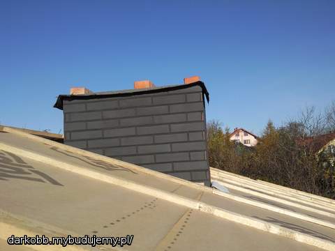 zdjęcia w zasadzie już nie aktualne robione w południe....do zmierzchu dach został przykryty....a tu na pierwszym planie nasz peryskop ;) dachówka wywietrznikowa z naszego wc ;) i "druciki" spinki do dachówki :) troszkę ich poszło 1300 sztuk :) teraz halniaki niestraszne ;)