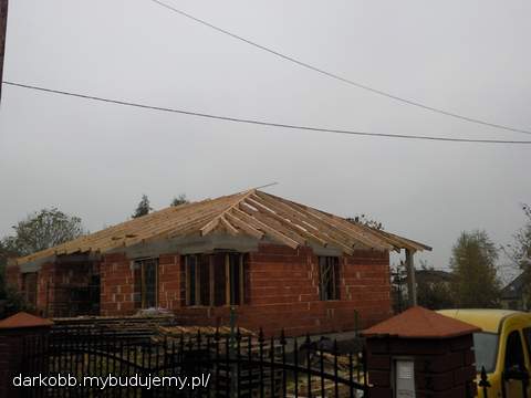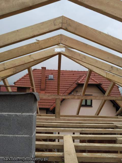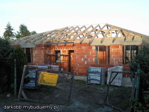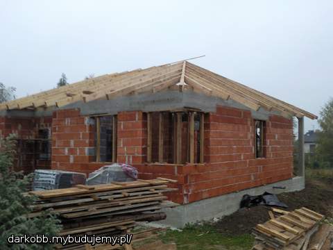 stan na dziś...po małych perypetiach z tartakiem (gdzieś się zapodziały krokwie grzbietowe 3 sztuki) jutro nasze gwiazdy podnoszą rękawice i walczą dalej z dachem ;) narazie wyprzedzamy zimę.....
