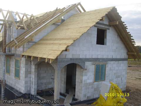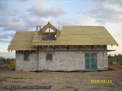 W PROJEKCIE NIE BYŁO DESKOWANIA DACHU A MY STWIERDZILISMY ŻE JEDNAK NIE DAMY RADY POŁOZYC DACHÓWKI W TYM ROKU WIEC ZDECYDOWALISMY SIE NA DESKOWANIE DACHU