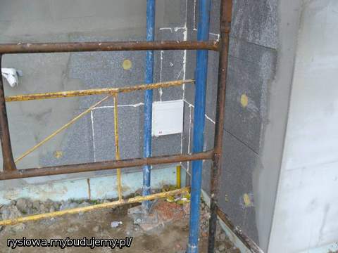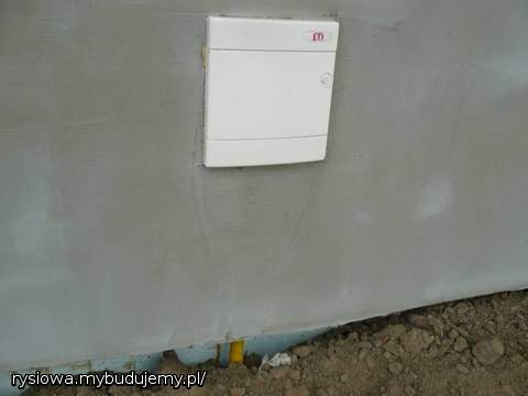 Mam wreszcie prawie skończoną stronę ogrodzenia od strony drogi służebnej. Prawie, bo czekam na koniec prac gazowników, co równa się założeniu żółciutkiej skrzyneczki i wycięciu dziury na tę skrzynkę. Panowie działają z gazem, ale efektu , czyli uruchomienie pieca - brak. Na zewnątrz budynku powstały takie dwie malutkie skrzyneczki. Jedna już obrobiona, druga czeka na zmiłowanie.