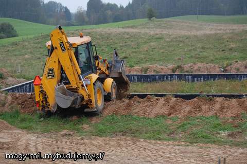 TO BYŁY CIEZKIE DNI DLA KOPARKI W I DLA NAS WOZENIE PIASKU I ZASYPYWANIE BOKÓW DOMKU I ROWNANIE TERENU WKOŁO DOMKU