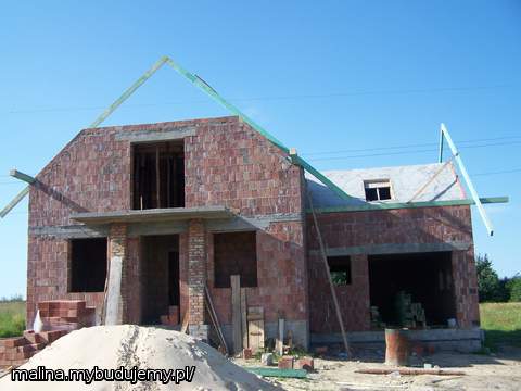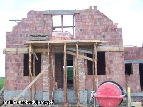 Cieśla od dachu przyjrzał się temu dokładnie i potwierdził nasze spostrzeżenia. Wezwaliśmy kierownika budowy i nasze spostrzeżenia potwierdziły się: za dużo wymurowali!. Dziś miał być zalany strop na poddaszu, ale czy tak się stanie to okaże się, czy ekipa zdąży poprawić swoją wpadkę. Będą musieli kawałek ścianek zburzuć i pociągnąć skosy, potem od nowa zaszalować, ułożyć zbrojenie.