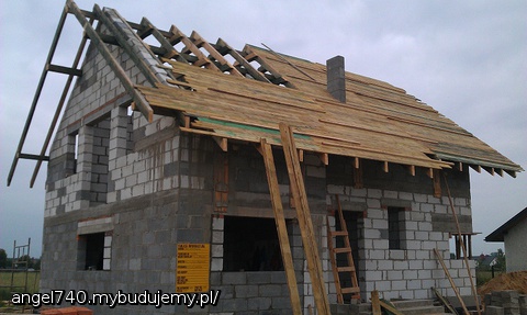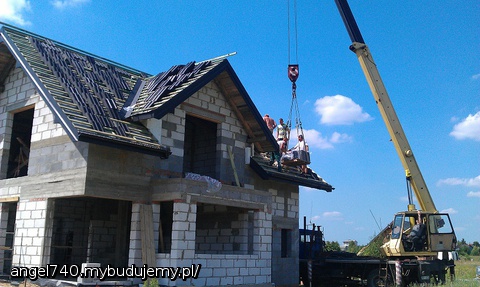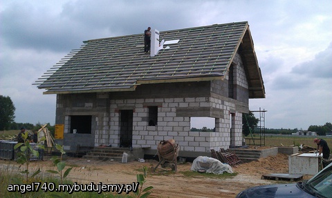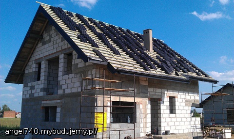 Dzisiaj cały dzień nowa brygada układała folię kontrałaty i łaty.Dobra wiadomość już jutro przyjedzie dachówka.Jesteśmy ciekawi jak to będzie wyglądać na dachu.Pan od okien jutro przyjedzie mierzyć otwory okienne i drzwiowe, parapety też chcemy zamówić i odrazu z oknami osadzić.Elektryk wchodzi do nas w sobotę, powiedział że w 2 tygodnia wyrobi się ze swoim zadaniem, a potem trzeba zaprosić Pana od tynków.Tynki chcemy cementno-wapienne, jak oglądaliśmy jakie są to bardzo nam się spodobały- "pachną życiem".
