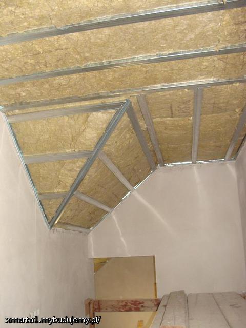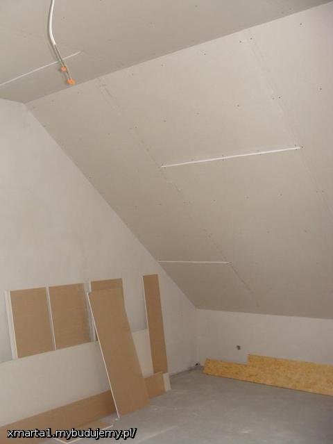 Zawsze będzie gdzie schowac pudełko z bąbkami lub choinkę, czy może narty.. Pozostałe pomieszczenia już obłożone wełną, teraz docinka płyt, która trochę czasu zajmuje, tutaj sufit w pomieszczeniu nad garażem