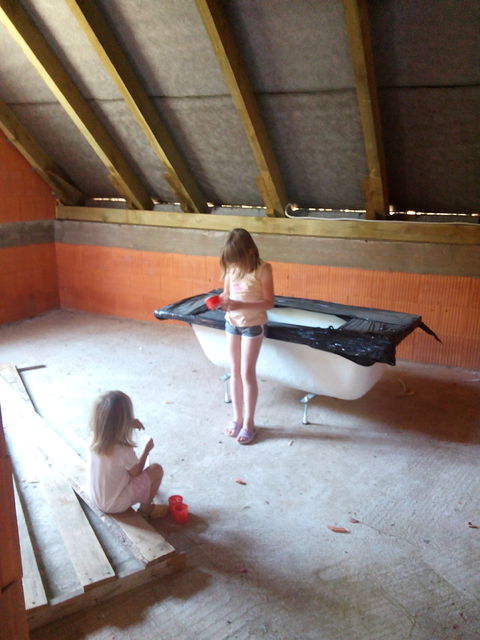Inwestor strategiczny wreszcie ogarnął elektrykę i moglismy zabrac się za hydraulikę. Zaczeliśmy od piętra bo na dole toczyło się życie wakacyjne.