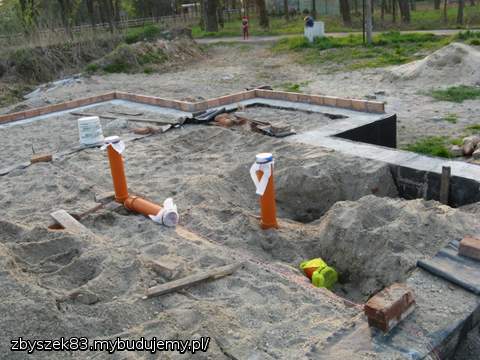 Pomału rusza się. Kanalizacja prawie skończona i  zaczęty wieniec pod wylewkę płyty  :). Trzeba skorygować przebicie na zewnątrz, zrobiłem je trochę za nisko trzeba poprawić. Teoria z praktyką się nieco się rozminęły, ale na szczęście idzie poprawić. Zabrakło jeszcze jednego trójnika i około metra rury żeby skończyć instalacje. Dziś po pracy juz nie udało się tego kupić, młot będzie na dniach może jutro.