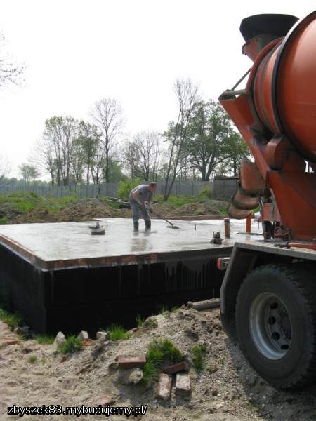 I udało się wylewka płyty zakończona. Beton punktualnie bez problemów wyliczyłem 11,5 m3 betonu zostało na niecałą taczkę :) więc dość precyzyjnie, już można chodzić :) jest chłodno więc nie trzeba go mocno zlewać, w nocy może popada za 2 godziny nocna zmiana hihi mam nadzieję że nie padnę jutro wyśpię się  trochę lepiej.