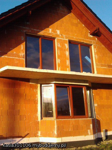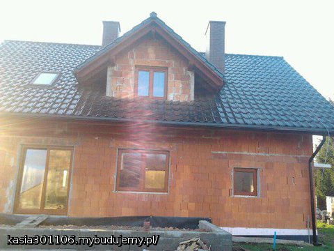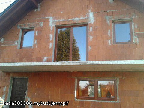 Okna nareszcie wprawione trochę to trwało ale jak zwykle fachowcy mają czas . Dżwi wejściowe narazie są prowizoryczne , te na stałe opiero bedą w połowie grudnia. ale ogólnie dom zamknięty.