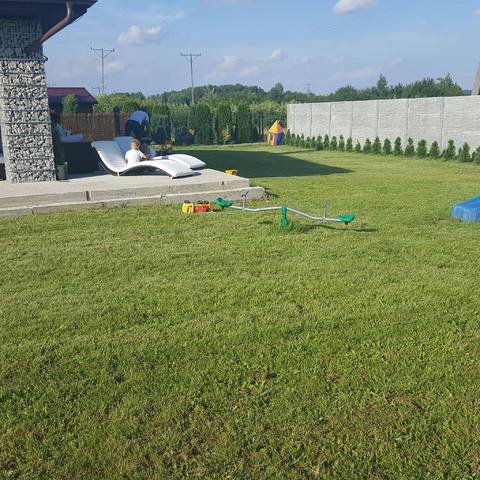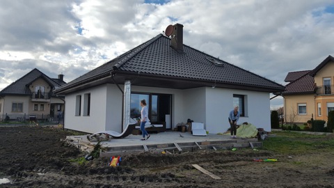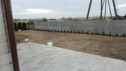 z przodu mamy jeszcze mega balagan czekamy na maj bo gmina ma nam wylac asfalt badz polozyc kostke co sie z tym wiaze wstawia nowe krawezniki wtedy zadbamy o pas zieleni i zrobimy podjazd. ale poki co oby do poniedzialku wtedy wsypujemy granit do gabionow