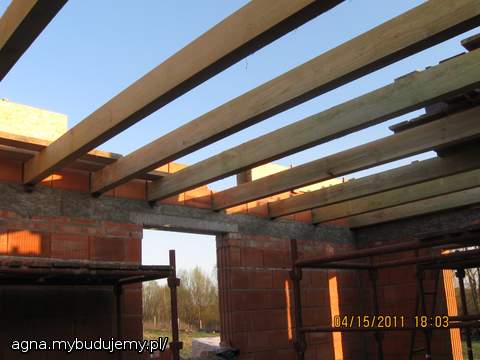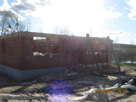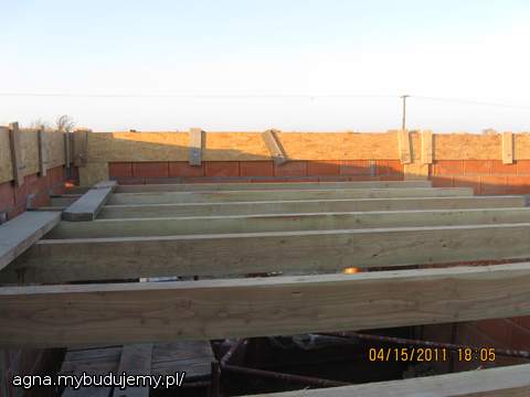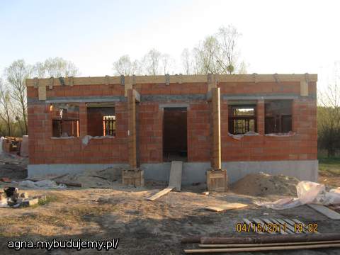 W poniedziałek zalany pierwszy wieniec, po weekendzie we wtorek przyjedzie kolejna grucha i ekipa zaleje drugi wieniec...belki stropowe poukładane...Majster który nam buduje buduje też swój dom i dziwił się nam że zdecydowalismy się na strop drewniany ale gdy zobaczył jak porządnie wyszły belki powiedział, że chyba też tak zrobi...Zresztą całkiem niedawno rozmawialismy z panem który w okolicy się buduje...kiedys udalismy sie zobaczyć jak ta jego chatka wygląda i akurat był i mówił, że gdy wybrali z żoną projekt to trochę załowali, że ten strop zdecydowali się mieć drewniany ale teraz jest pewien, że to był bardzo dobry wybór :)