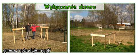 17 kwietnia to data, którą mamy w dokumentacji podaną, jako rozpoczęcie budowy i tegoż dnia następuje wytyczenie domu. Juz nie musimy sobie wyobrażać, gdzie i jak będzie stał dom, ale mniej wiecej to widzimy. Przy okazji duże zaskoczenie - różnica poziomów na działce wynosi 1,5m! W życiu byśmy nie pomyśleli, że aż tyle! Działka płaska, równa... gdzie tu te 1,5m? No ale wierzymy fachowcom;) Także w obniżonej części, praktycznie bez kopania możemy stanąć w piwnicy:) Decydujemy, że będziemy nadsypywać i podniesiemy teren.