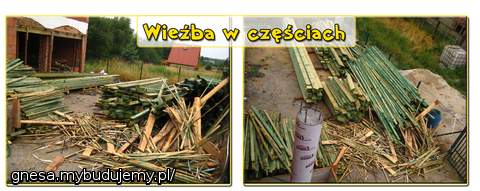 Gdy już tak mniej więcej ściany były gotowe, wtedy zostało przywiezione duuużo drewna – czyli więźba.