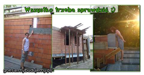 Oczywiście nad całością prac oprócz szefa firmy budowlanej, inspektora nadzoru, kierownika budowy itp. itd. czuwa Firma Fuszera :D Wszystko trzeba dokładnie sprawdzić – „A czemu to jest takie”, „A czy przez ten komin na pewno wejdzie Mikołaj?” ;) Jak na razie zdarzyła się tylko jedna wpadka: otóż, któregoś dnia po przyjściu na budowę okazało się, że mamy balkon… albo raczej przygotowane miejsce na wylanie balkonu od strony ogrodu. A myśmy z tego balkonu zrezygnowali wprowadzając zmianę w projekcie… którą nasz architekt zaznaczył na tylko jednym rysunku – niestety akurat nie tym, z którego korzystają budowlańcy:/ No ale jeden telefon i sprawa została wyjaśniona – następnego dnia nie było już śladu po balkonie;)