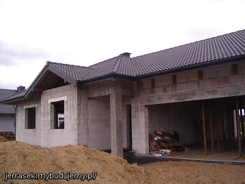 Udało się przykryć dach dachówką betonową,  wstawić okna i ocieplić dom.