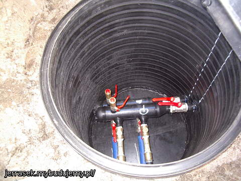 Rury od pompy PC po zrobieniu odwiertów wprowadzono do budymku poprzez studzienkę i tak to wygląda.