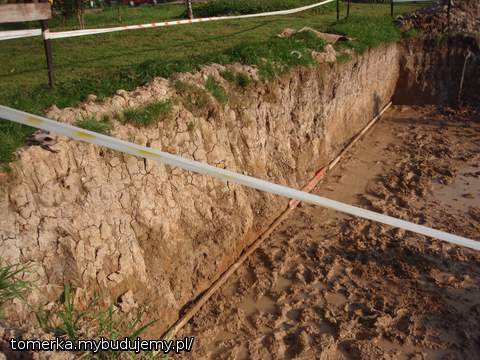 Poniewaz dom nasz posiada piwnice to Pan Koparkowy troszke sie narobił .Przyjechał 26.07.10r.wykop miał ok.1000m3. Teraz juz praca nalezy do nasMusimy wyrównać dno , poniewaz zdecydowalismy sie na płytę fundamentową .Przemówiło za tą decyzją kilka rzeczy .Niestety nasza działka jest zaliczona do 3 kategorii szkód górniczych , a nasz teren budowy to sama glina .I jeszcze słyszelismy ze taka płyta pozwala szybciej wybudować domek.