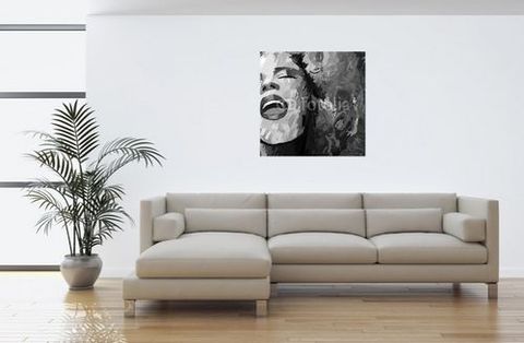 Proponuję wykonywaną przez nas, czarno-białą naklejkę, która przedstawia piosenkarkę jazzową. Wpasuje się do salonu urządzonego w spokojnych i jasnych barwach tj. bieli, kremowym, szarym i jasnym brązie. Zastosowana w niej technologia punktowego kleju umożliwia łatwe i szybkie naklejenie bez bąbli i udziału specjalistów. Po paru tygodniach klej rozprowadzi się po całej powierzchni równomiernie, a naklejka stanie się idealnie płaska.